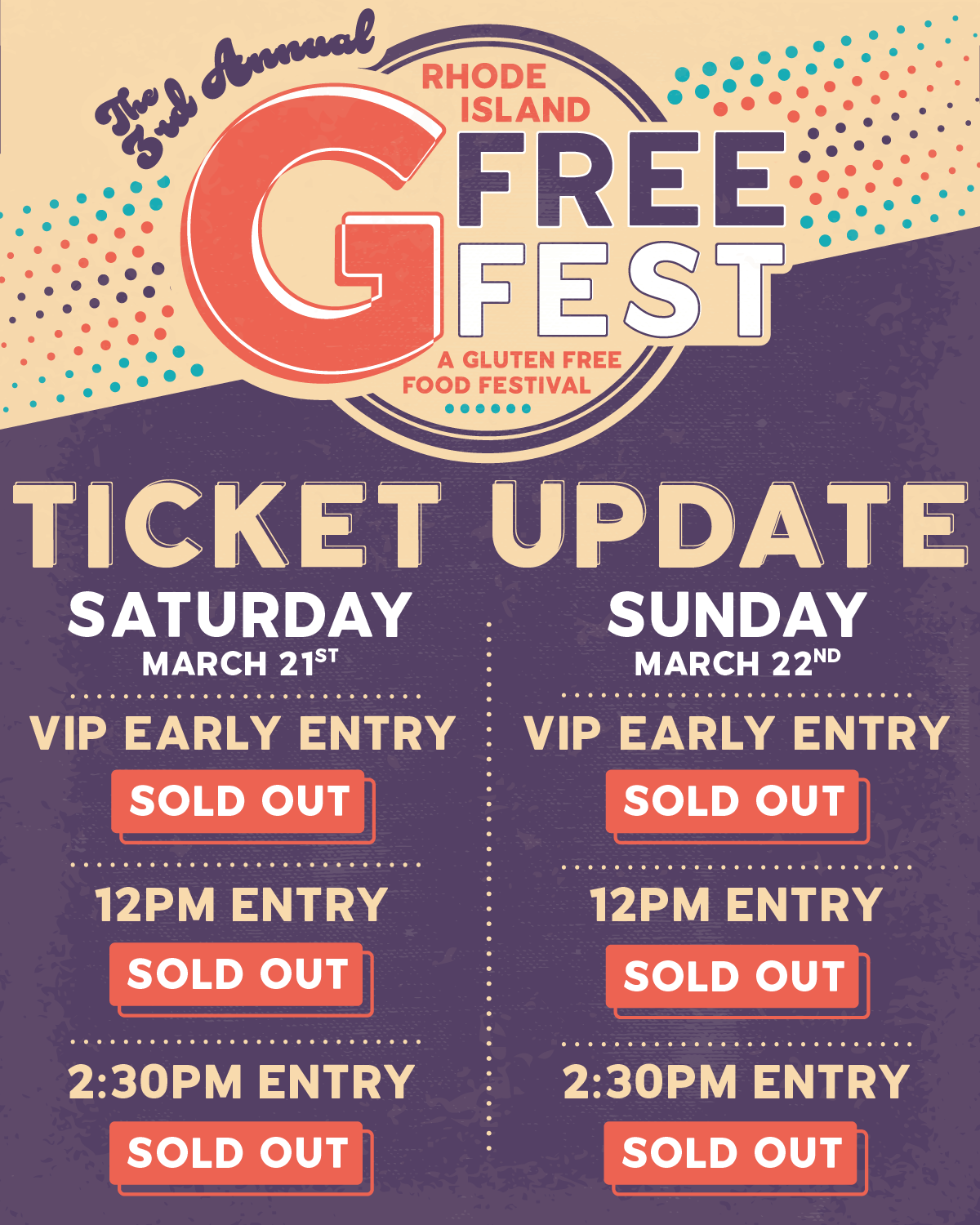 GFree Fest is now completely SOLD OUT! As with any indoor event, there is a capacity we must stick to, and we offered three sessions to stagger entry and allow as many of you to join us as possible. Because of this, we will not be releasing more tickets and they will not be available at the door.